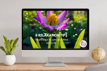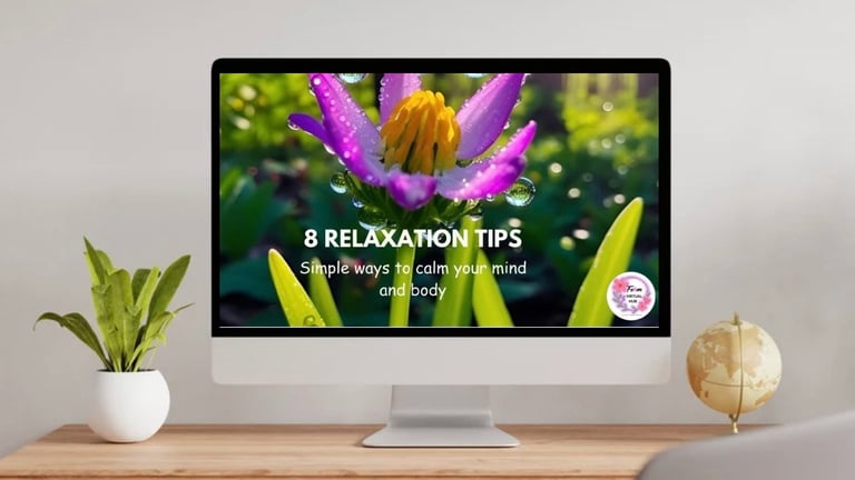 Eight simple and practical ways to relax your mind and body after a long day. This Canva slides offers calm visuals and easy-to-follow reminders to help reduce stress and find peace daily.