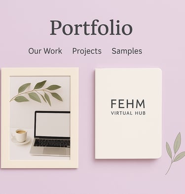 Every design tells a story - and here, you'll find pieces that highlight how FEHM Virtual Hub transforms simple ideas into meaningful visuals and organized workflows. Explore our work that inspires calm, productivity and growth.