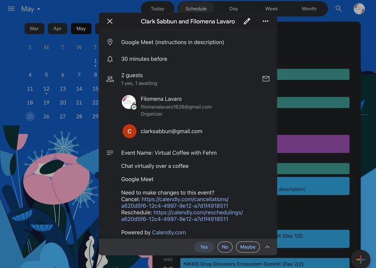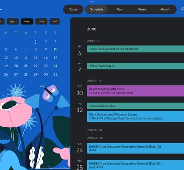 A modern and user-friendly calendar layout integrated with Google Calendar and Calendly, designed to simplify scheduling and event managements, stay organized and never miss an important meeting.